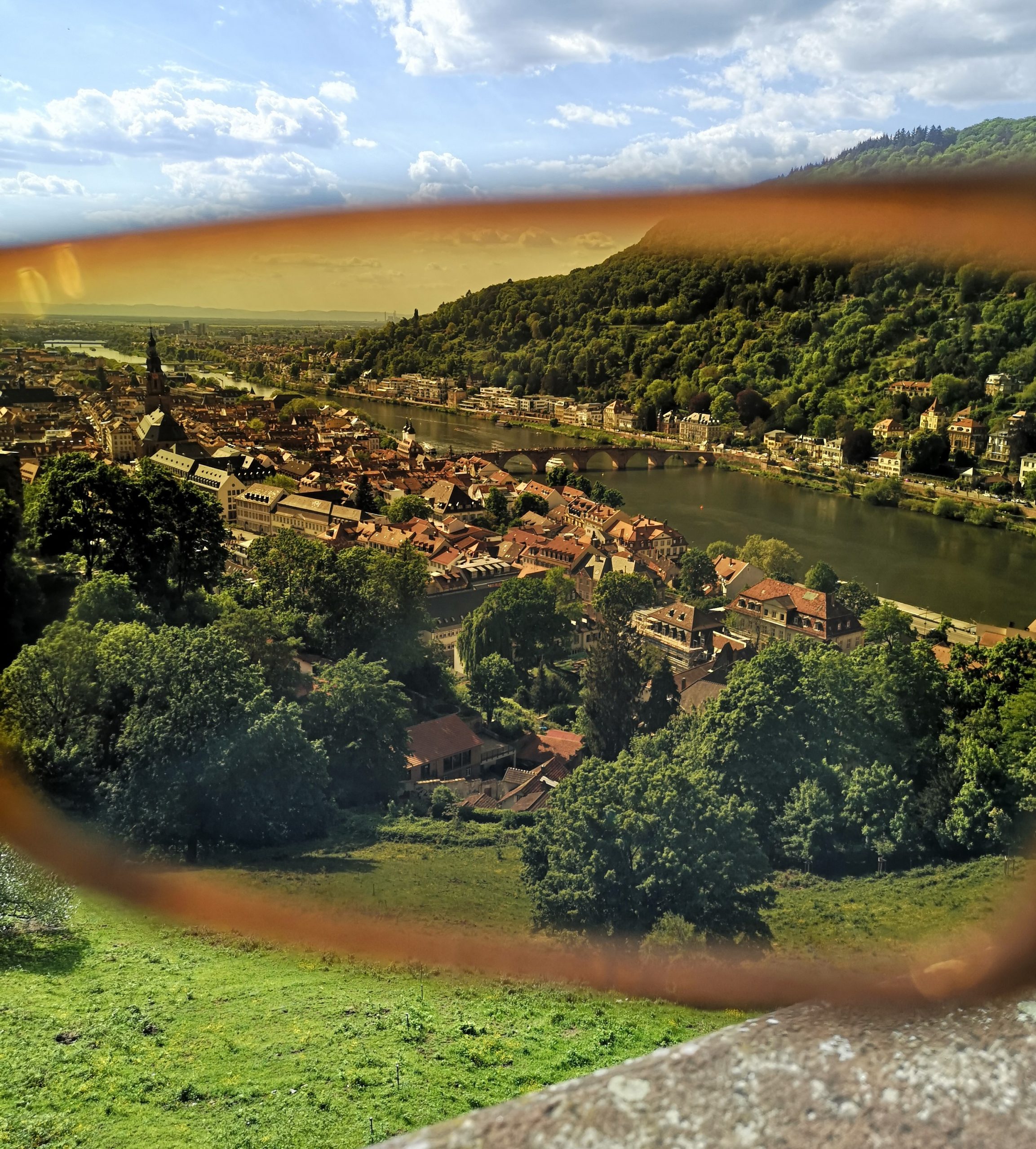 view from Philosophers' Walk to he Old Town and the castle- Heidelberg, Germany