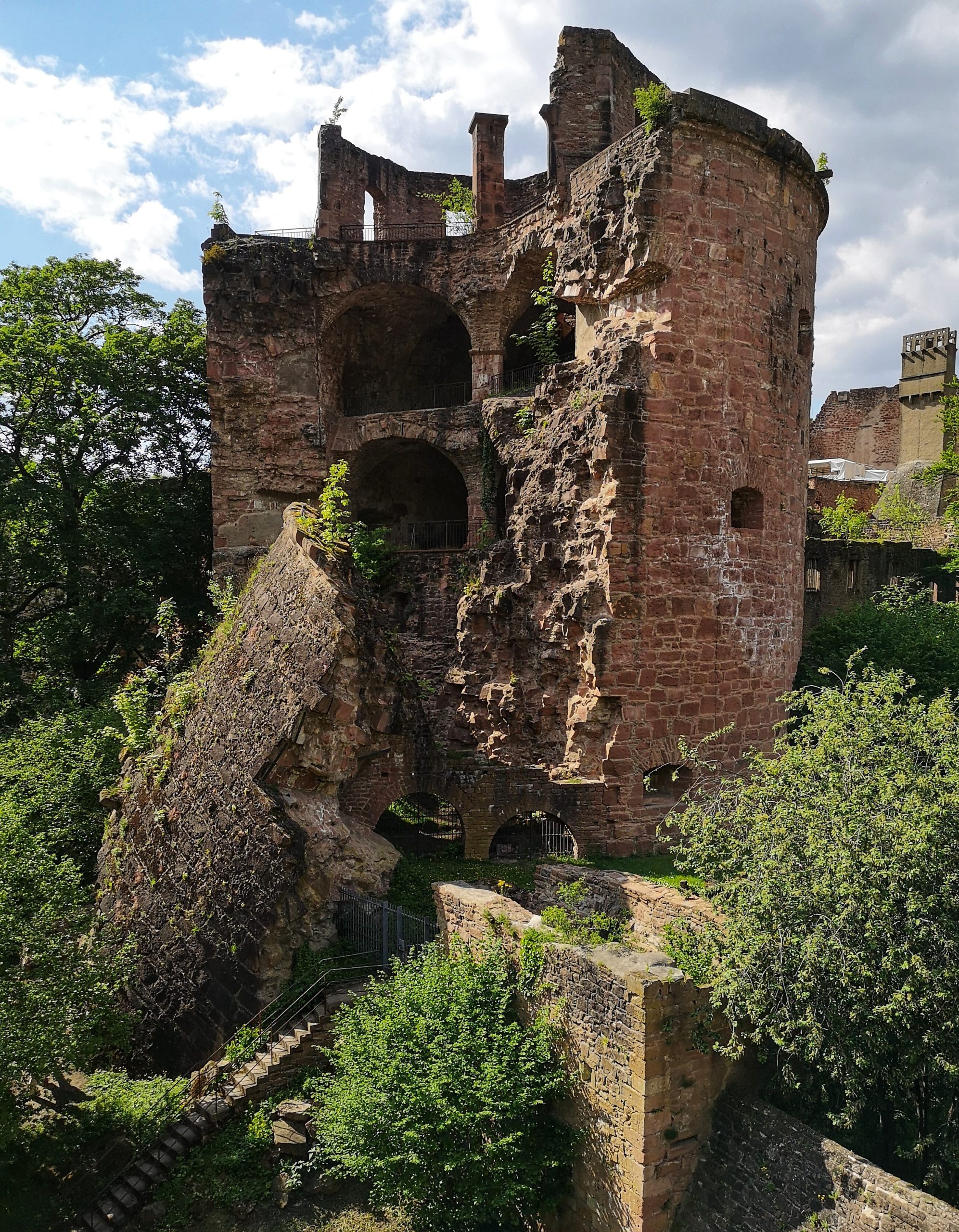 a vastag falak ellenére kettétört bástya a Heidelbergi Kastélyban