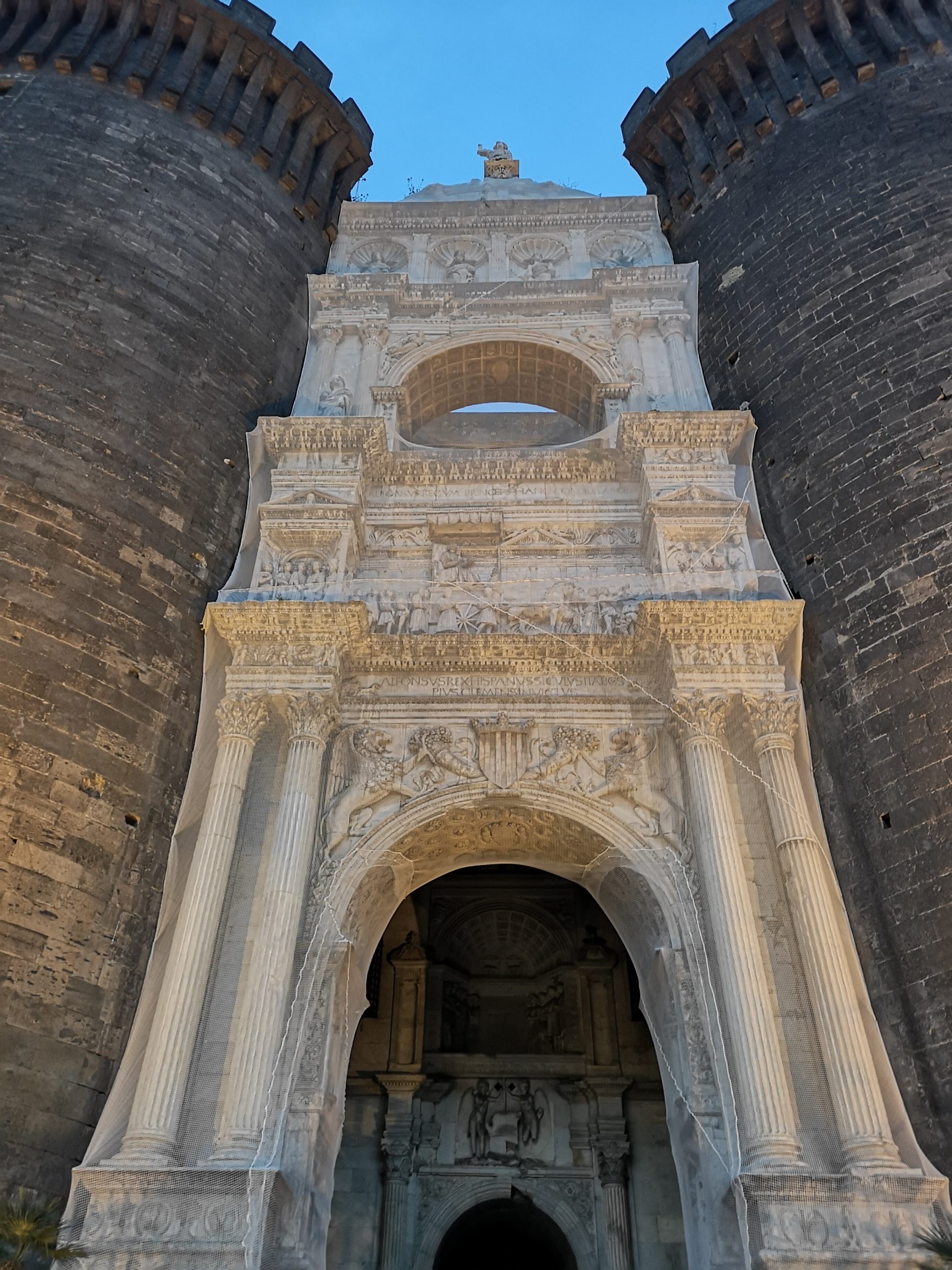 A tengerpart mellett áll, a XIII. században I. Anjou Károly által építtetett vár, amit Anjou Róbert bővíttetett tovább. Nagy Lajos magyar király az 1. támadása során bevette ezt a várat, de megtartani nem tudta. I. Johanna királynő újjáépíttette és a megerősített vár már ellenállt Nagy Lajos második ostromának. A XV. században V. Alfonz is felújíttatta a várat, és ekkor került a reneszánsz, márvány diadalív a két bástya közé, ami a mai napig a vár jellegzetessége.