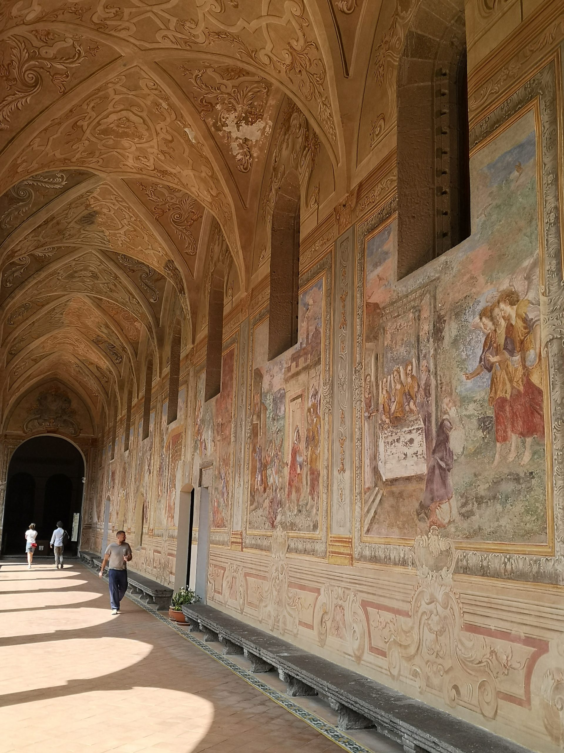 Az összes látnivaló közül Nápolyban nekem ez a kolostor lett a kedvencem. Elképesztő, hogy szinte nem maradt olyan kis felület sem, ami ne kapott volna valamilyen díszítést. A szépen gondozott kert pedig érett, ínycsiklandó narancsokkal teli fákkal van tele.