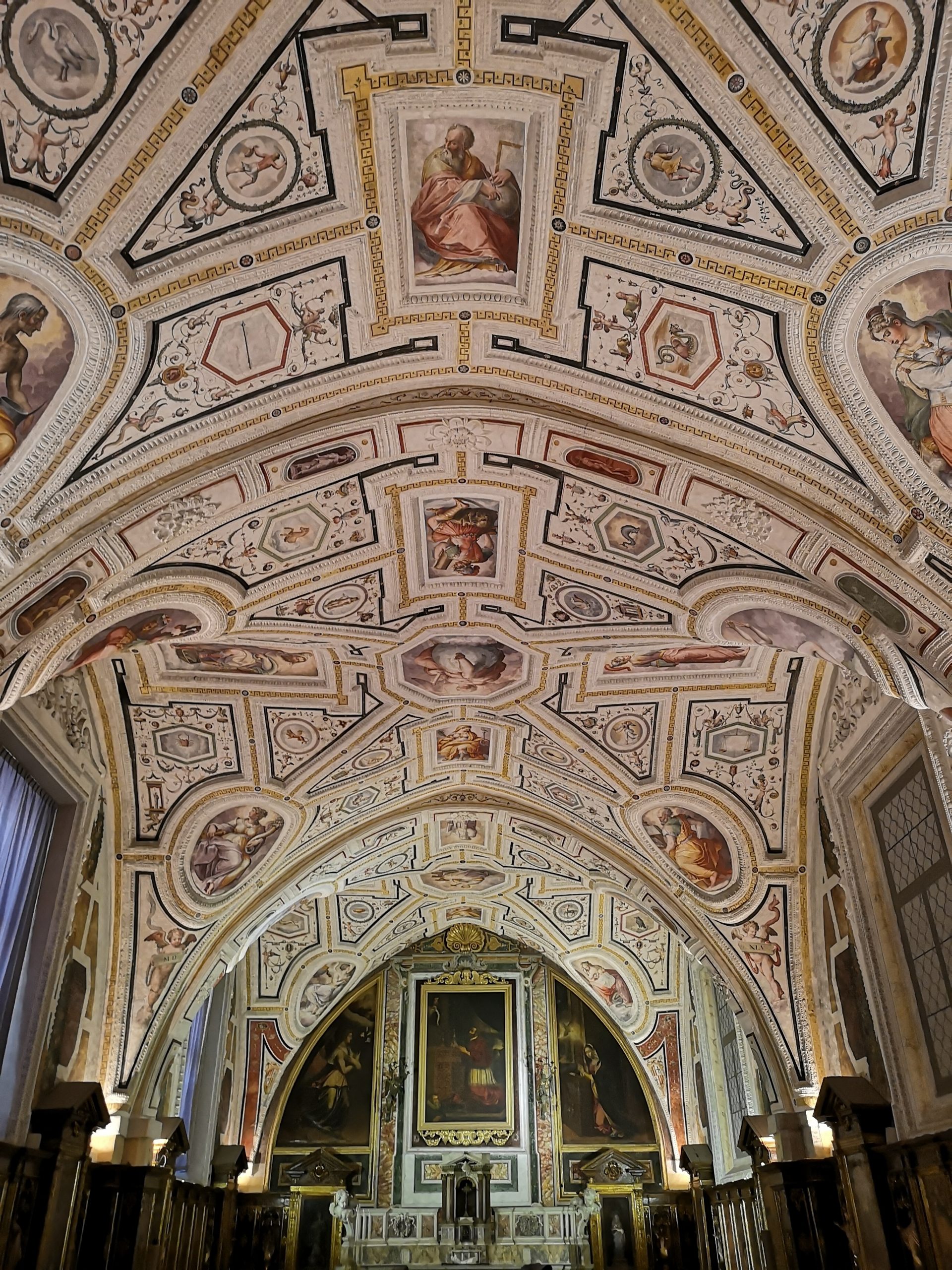 Az épületegyüttes a XV. század elején épült. A kápolna és a templom falait és mennyezeteit Vasari freskói díszítik. A templom előcsarnokában áll Domenico Fontana építész sírja (akinek a neve a blogban több épület kapcsán is szóba került).